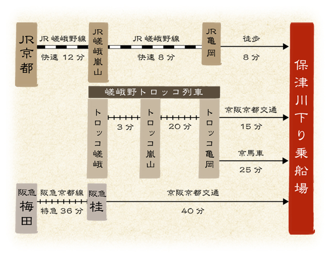 JR亀岡駅からお越しの方阪急沿線からお越しの方トロッコ列車からお越しの方