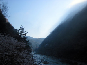武士ヶ古場と大瀬は新緑とヤマザクラ。