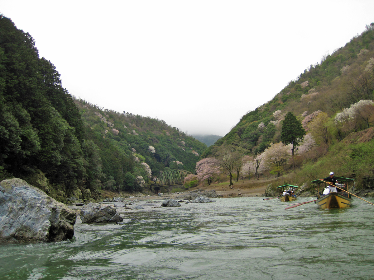 野趣あふれる保津峡の桜たちとの別れを惜しむ船旅はいかがですか。