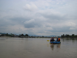 そして昨日は現時点での保津峡の倒木や流木の有無を確認するため、当社のラフティング部隊とともにラフティングにて視察をおこないました。