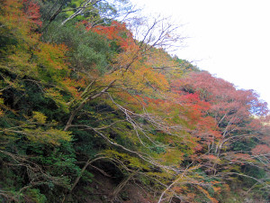 緑から朱色へとうつろい始めたもみじ葉たちが、素敵な色彩のグラデーションを見せてくれています。