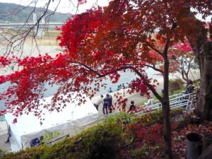 乗船場の紅葉もやっといい感じに染まってきました(^^♪