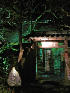 小倉山のふもと、嵯峨野にある落柿舎(らくししゃ)に、落柿ならぬ柿行灯が灯っていました。