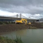 普段船溜まりを堰止めている箇所が決壊して、その復旧工事を早朝から夕方日が陰るまで続きました。
