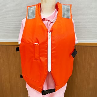 夏の時期は、肩掛け式自動膨張式救命胴衣を着用していただきます。
