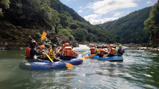 渓谷の流れに合わせて進むボート体験。写真撮影にも適したポイン